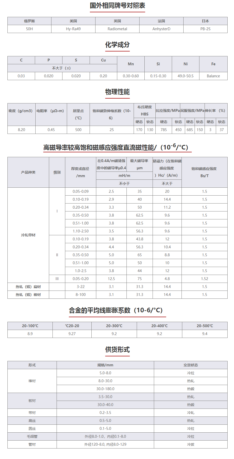 用于制造在中等磁场中工作的放大器,阻流圈,整流器铁芯,以及计算机装置元件.