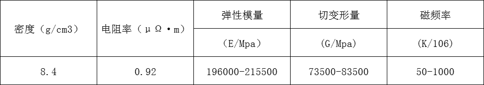 钴铬合金,综合性能优异,具有高的弹性模量,高的弹性极限,极低的弹性后效(0.02%)。经冷加工其抗拉强度Rm高达2950Mpa。同时还具有高的疲劳寿命,高硬度,高耐磨,缺口敏感性低,工作温度高达400~500℃。主要用于制作轴类,张力丝,特种轴承,对弹性敏感性要求高的弹性元件。